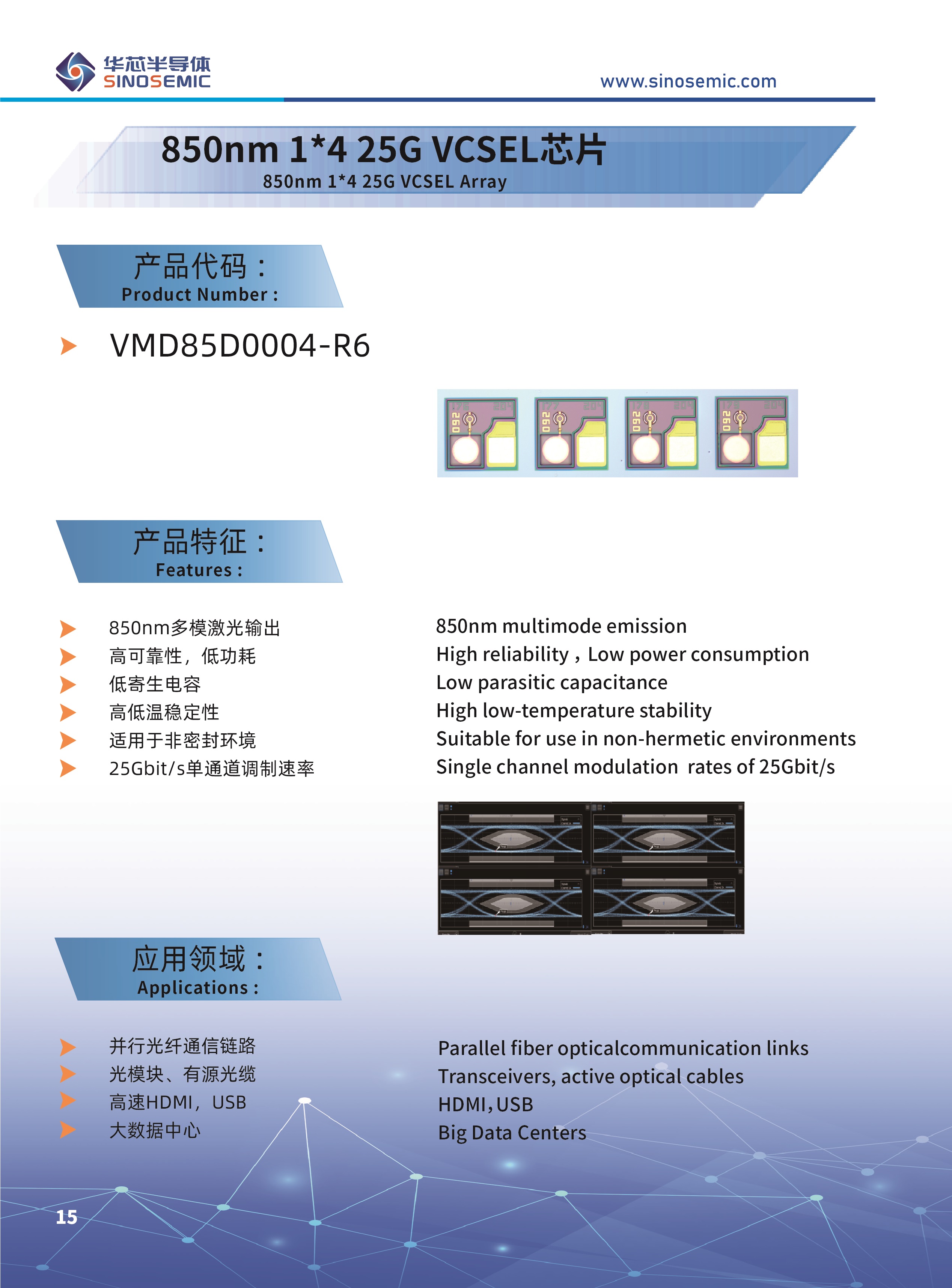 850nm 1*4 25G VCSEL芯片