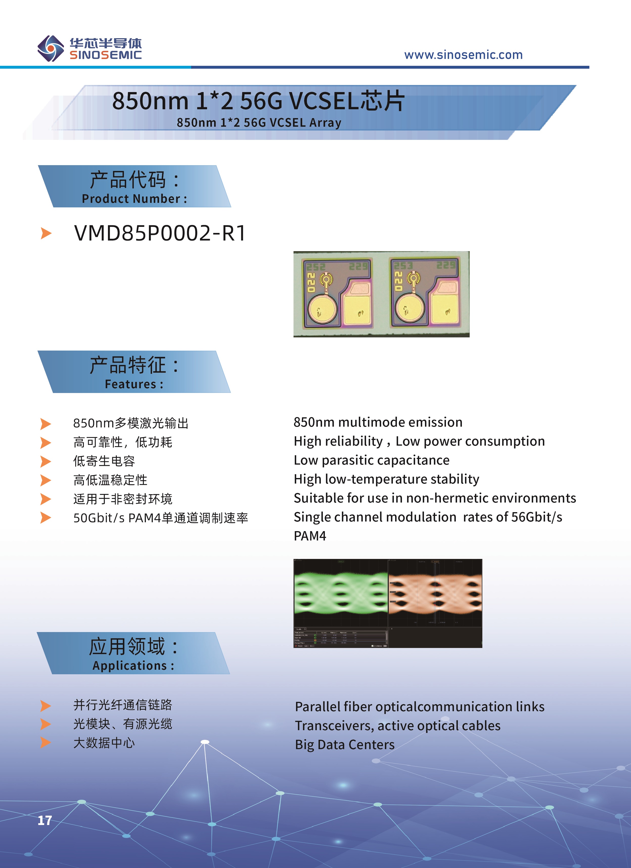 850nm 1*2 56G VCSEL芯片