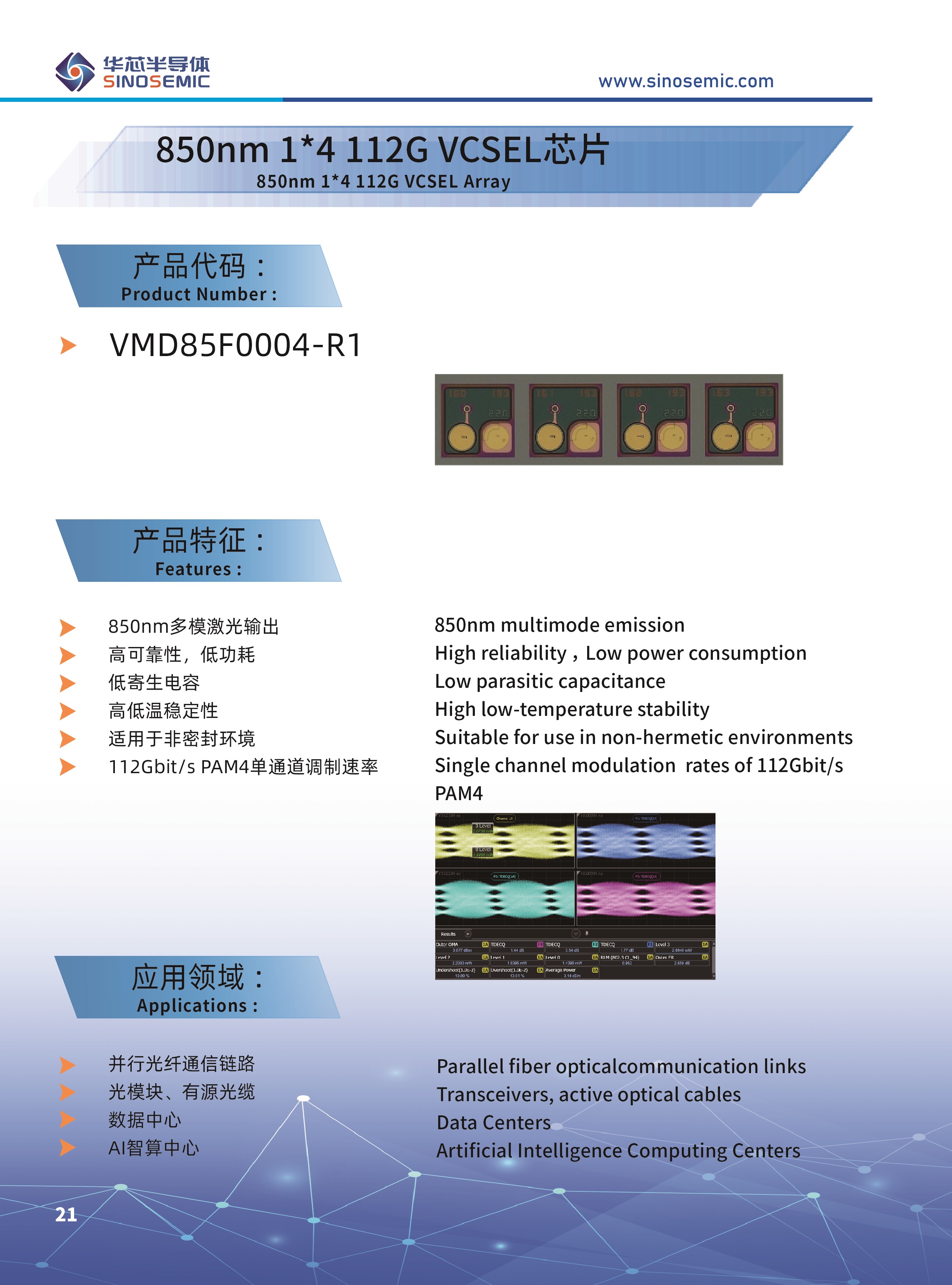 850nm 1*4 112G VCSEL芯片